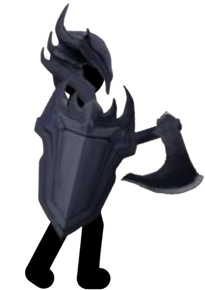 In Stick War: Saga they have a skeleton body with some thorns on it, along with a slit in the shield for the axe to go through when the Juggerknight charges. The Juggerknight also now has a visible heart and some scratches on the shield and has a more executioner type of axe head for the axe, and he looks bigger than most normal figures.
